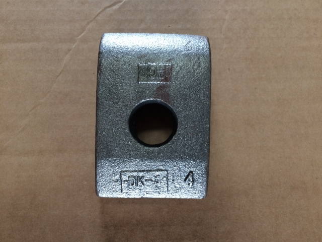 Made of Tough Ductile Iron. 2-1/2" wide, 4" long. Nose is 5/8" thick. 1" Dia Bolt Hole. 1" Rise. Guaranteed to take 7/8" bolt. No heel. Quantity Discounts Available.