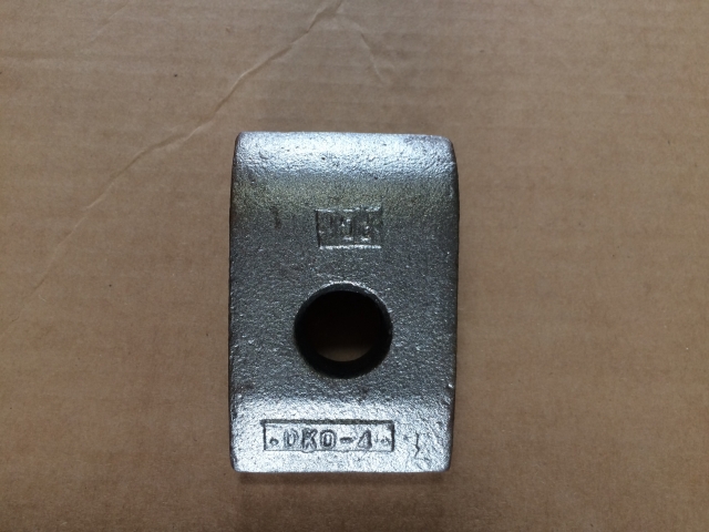 Made of Tough Ductile Iron. 2-1/2" wide, 4" long. Nose is 5/8" thick. 1" Dia Bolt Hole. 1-1/2" Rise. Guaranteed to take 7/8" bolt. Has 1/2" heel. Quantity Discounts Available.