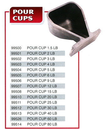Pour cups for permanent mold 1/2 Lb to 80 lb