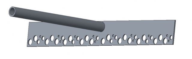 Sow skimmer designed to be used as an EOA tool. The skimmer is 44 inches long, 5 inches high, and made of 1/4 inch thick hot rolled steel with 1/4 and 3/4 inch holes to allow the metal to flow out while separating off the dross.