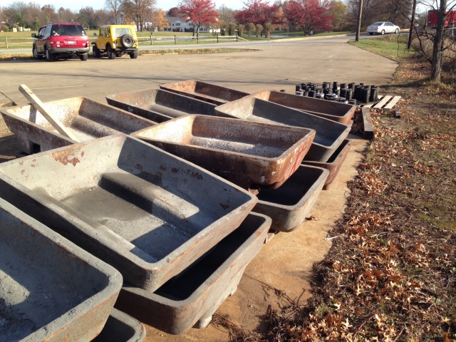 Used 2000 lb. Capacity low profile style molds with cracking and moderate heat checking, molds are idea for hot dross and can be used to hold hot dross from furnaces. Molds will hold molten metal and can be used to drain furnaces .
